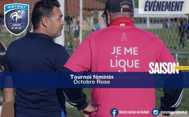 Depuis 5 ans, le District du Gers de Football s’engage aux côtés de la Ligue Contre le Cancer pour faire de l’événement "Octobre Rose" un rendez-vous incontournable dans notre département. Parce que le sport rassemble, parce qu’il porte des valeurs de solidarité, nous faisons du football un vecteur ...