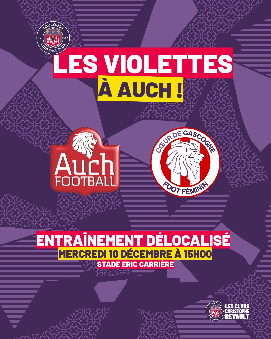 Evénement sportif exceptionnel, mercredi 10 décembre à 15h au stade Éric Carrière. Les féminines du Toulouse FC, actuelles leaders du championnat de 2e division, réaliseront un entraînement délocalisé suivi d’une...