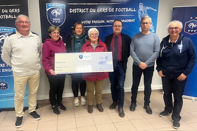 Lundi 9 février a eu lieu dans les locaux du District la remise d'un chéque de 550 euros de la part du District du Gers de Football en faveur de l'AFM...