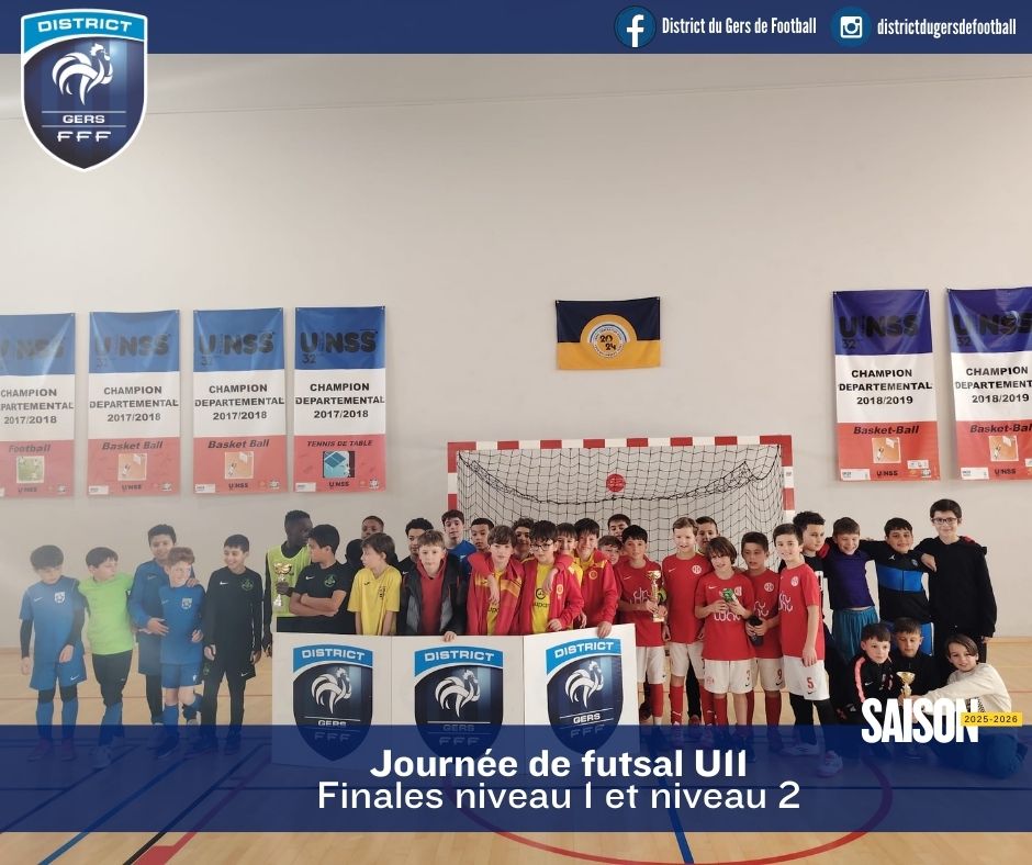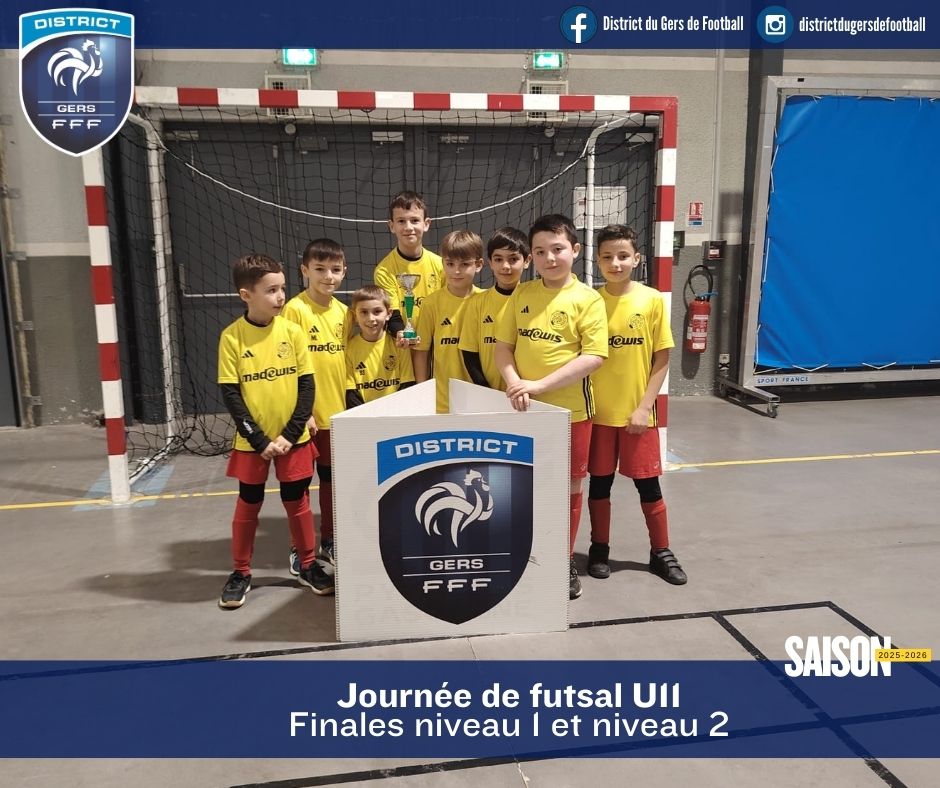 Le samedi 10 janvier, se sont déroulées les finales Futsal U11 pour les niveaux 1 et 2, offrant un beau spectacle et mettant en lumière l’engagement et la progression des jeunes footballeurs gersois.