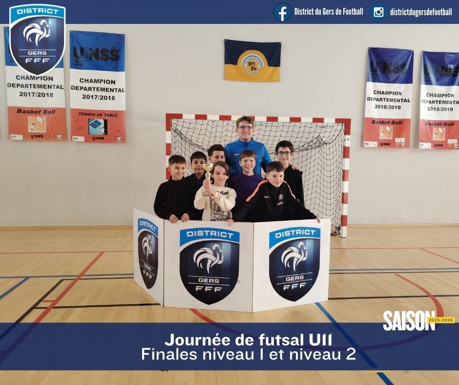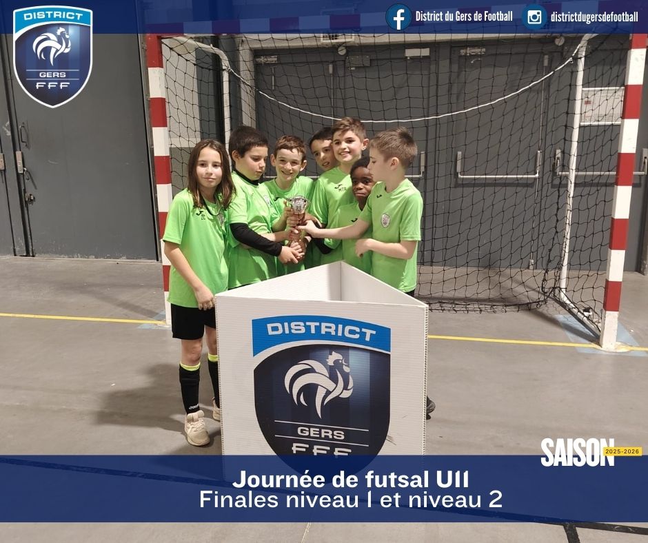 Le samedi 10 janvier, se sont déroulées les finales Futsal U11 pour les niveaux 1 et 2, offrant un beau spectacle et mettant en lumière l’engagement et la progression des jeunes footballeurs gersois.