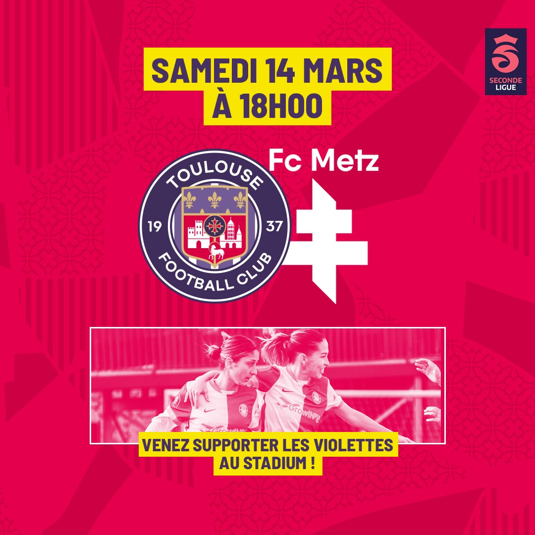 Le TéFéCée a le plaisir de vous attribuer 400 invitations pour le match des Violettes au Stadium face à Metz, le samedi 14 mars à 18h00.