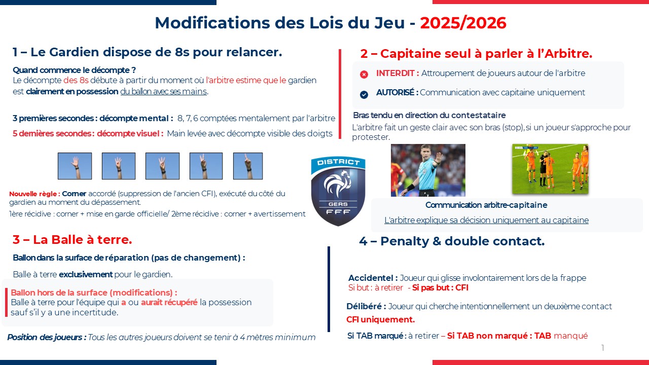 ➡️ Les modifications des lois de jeu, applicables cette saison, ont été présentées lors des différentes réunions de début de saison.