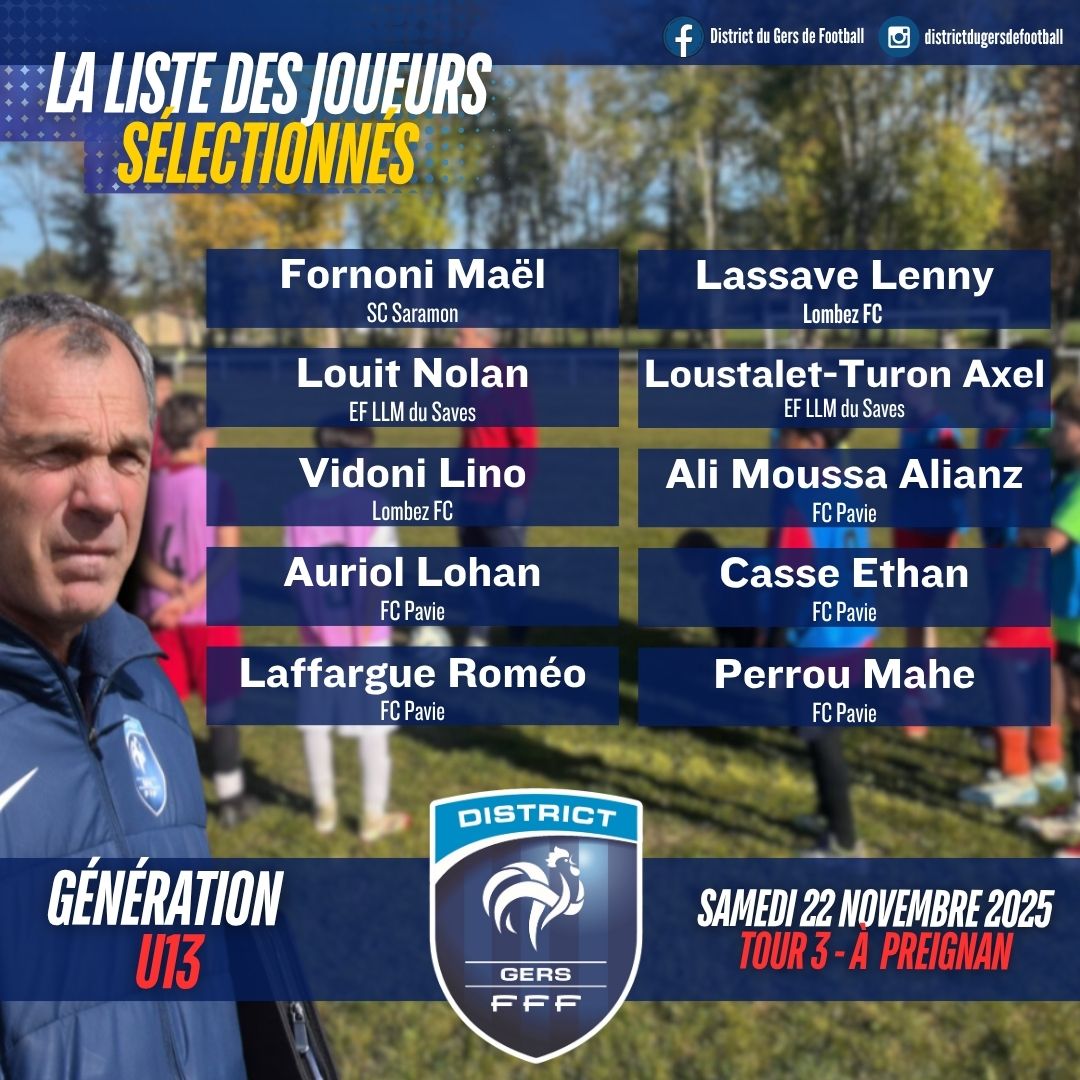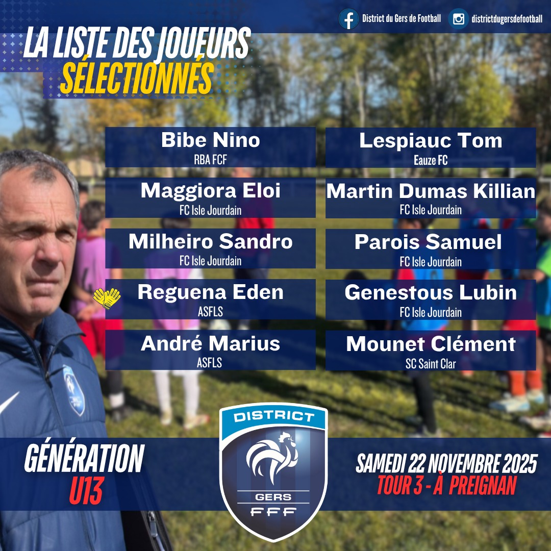 Après une seconde journée de détection, découvrez la liste des 4ï¸âƒ£9ï¸âƒ£ joueurs de la génération 2013 convoqués par ð—£ð—®ð˜ð—¿ð—¶ð—°ð—² ð— ð—®ð—¿ð˜€ð—²ð—¶ð—¹ð—¹ð—¼ð˜‚ – ð—–ð—§ð—— ð—£ð—£ð—™ pour un nouveau rassemblement départemental, le ð¬ðšð¦ðžðð¢ ðŸðŸ ð§ð¨ð¯ðžð¦ð›ð«ðž ðŸ®ðŸ¬ðŸ®ðŸ± sur les installations de Preignan.